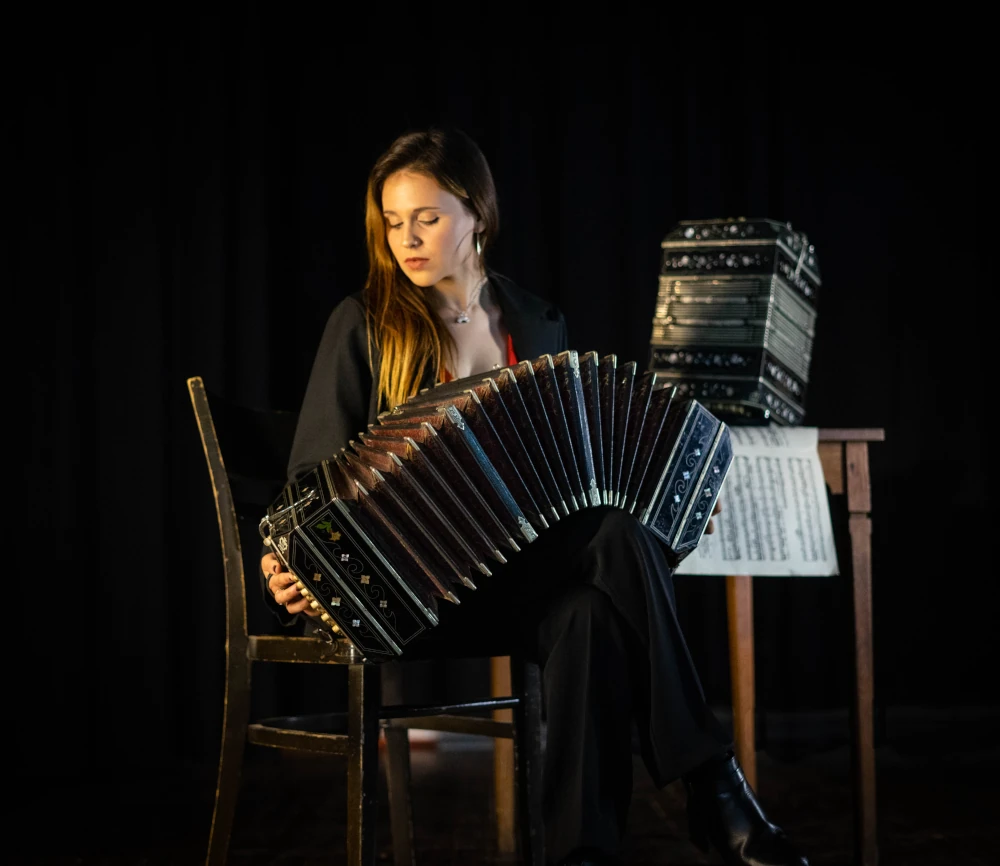 An accomplished bandoneonist and vocalist, she is a member of Contramano Tango 4 and coordinates the bandoneon section at the Orquesta Escuela Municipal de Tango de La Falda. Her distinguished career includes Latin Grammy and Gardel award nominations, reflecting her extensive experience performing on prestigious national and international stages. As a versatile artist and seasoned orchestral musician, she brings a deep, authentic mastery of the instrument to the contemporary tango tradition.